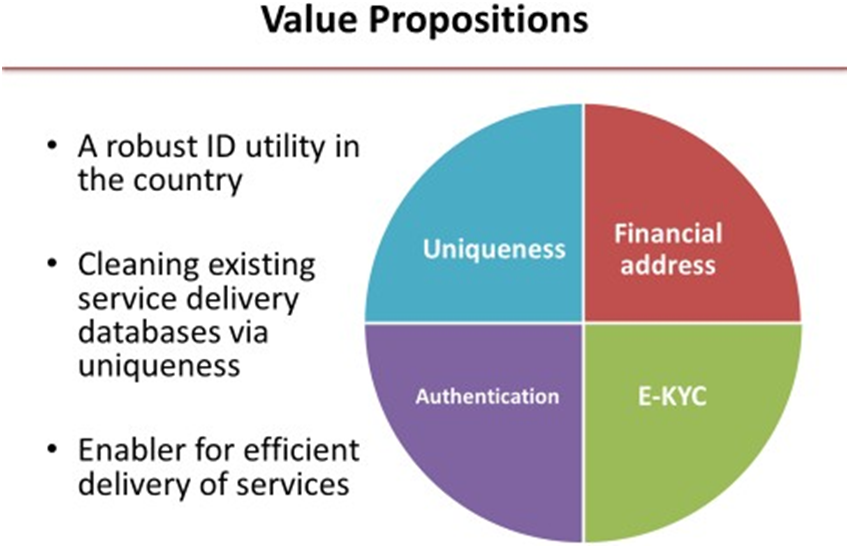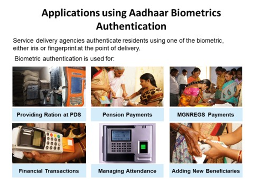- Aadhaar ensures Uniqueness through biometric attributes: Fingerprint & Iris